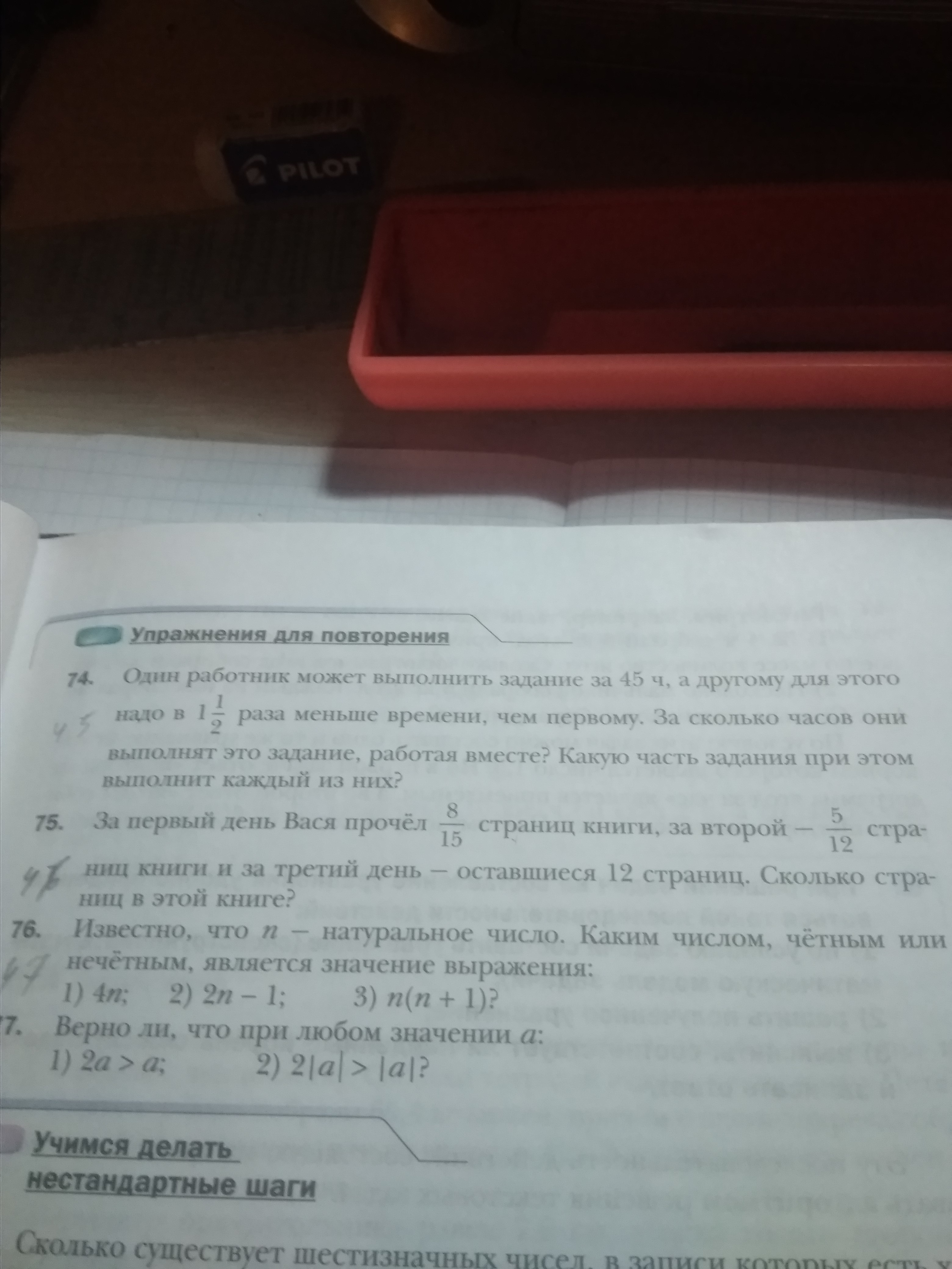 1) 1 : 45 = 1/45 - выполнит первый работник за 1 час работы