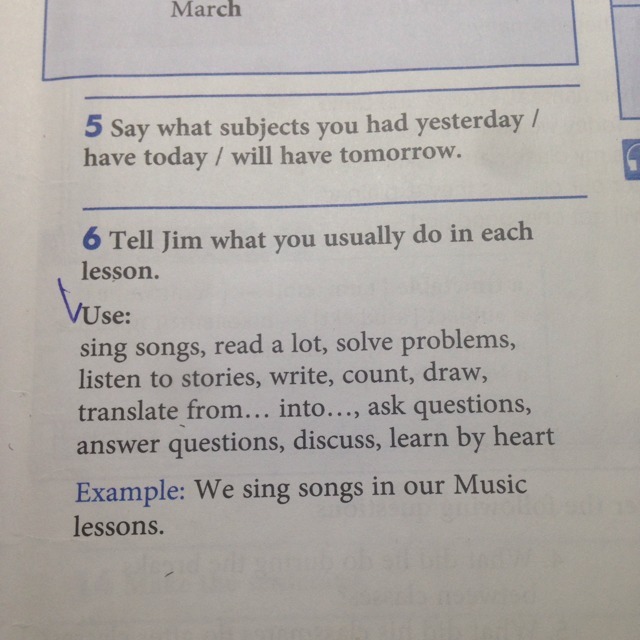 Расскажи Джиму что ты обычно делаешь на каждом занятии.