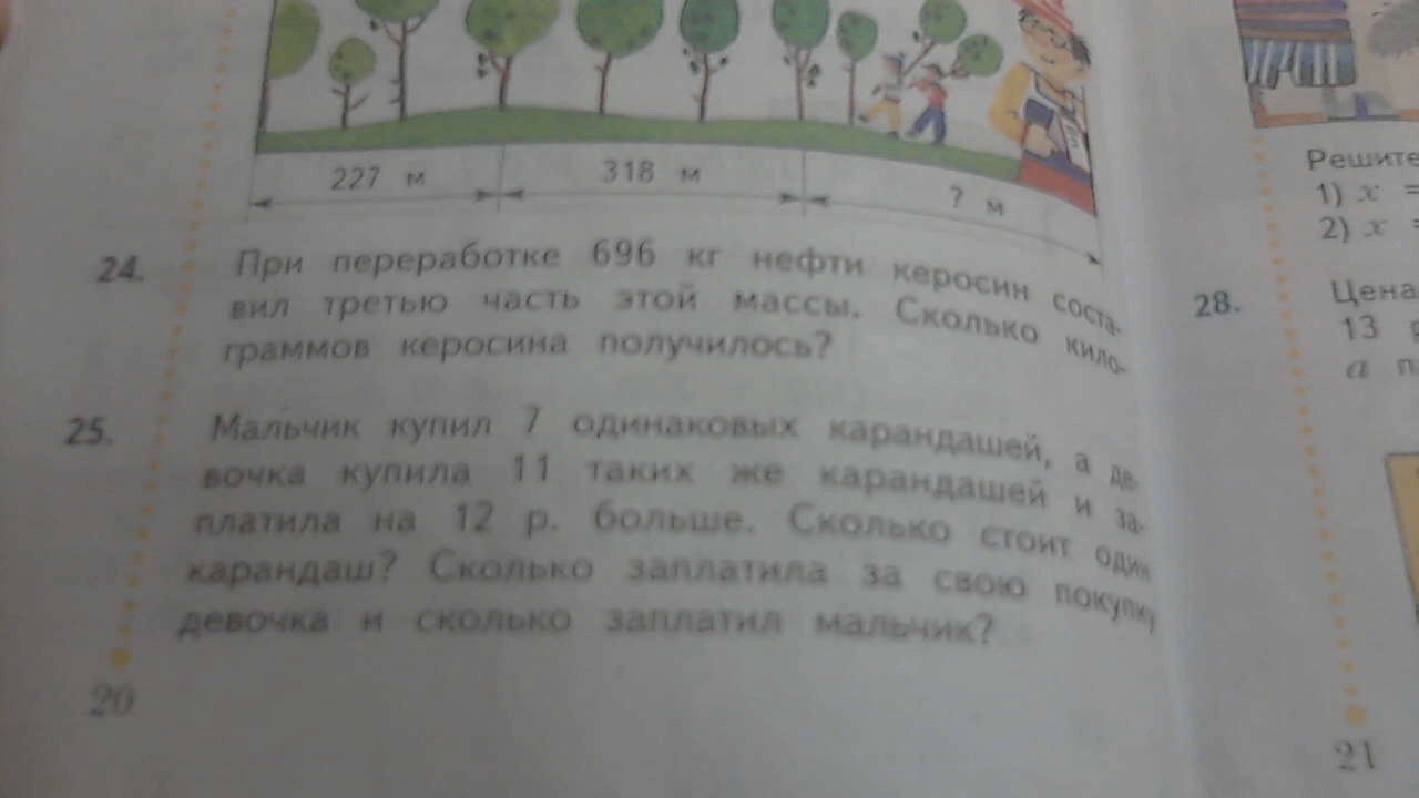 1)11-7=4 - на 4 карандаша девочка купила больше чем мальчик