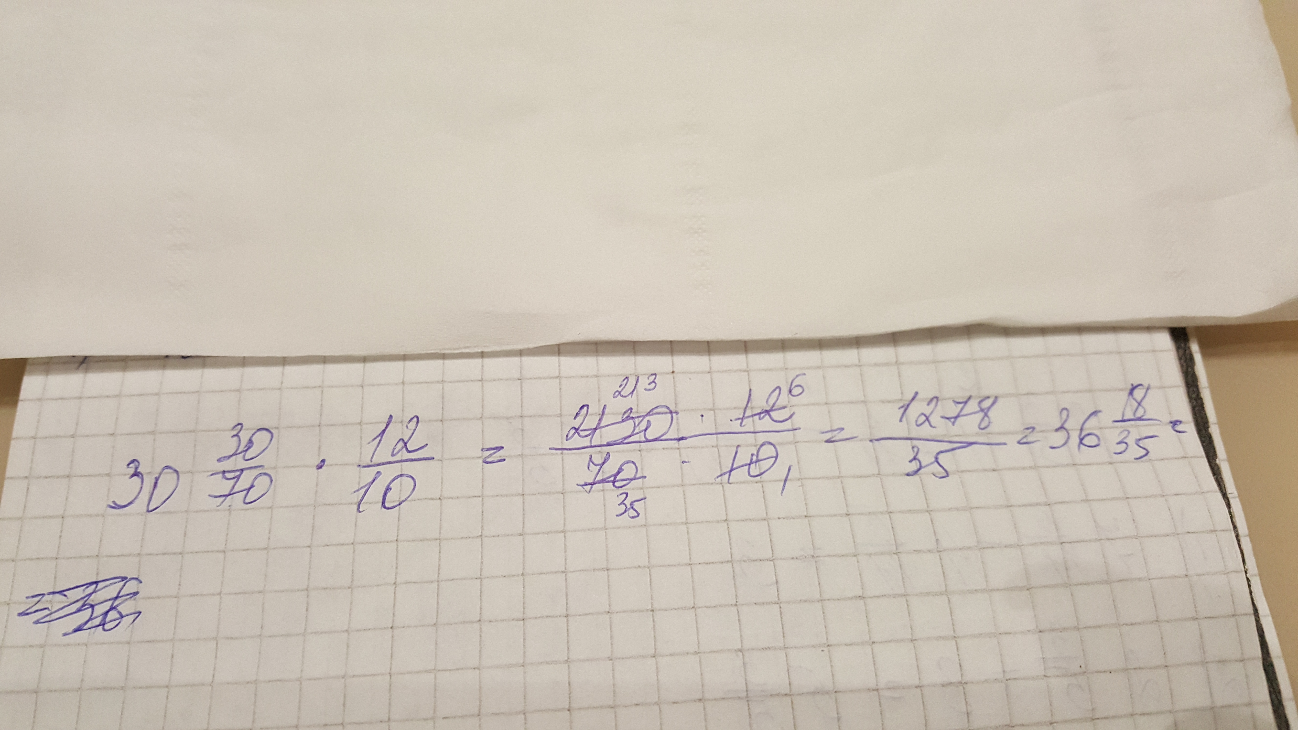 36 целых 30/70 = 36 целых 3/7 = (36*7+3)/7 = 255/7