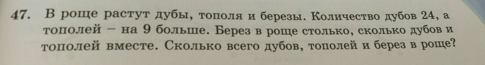 В. 24 дуба +33 тополя + 57 берез =114 деревьев