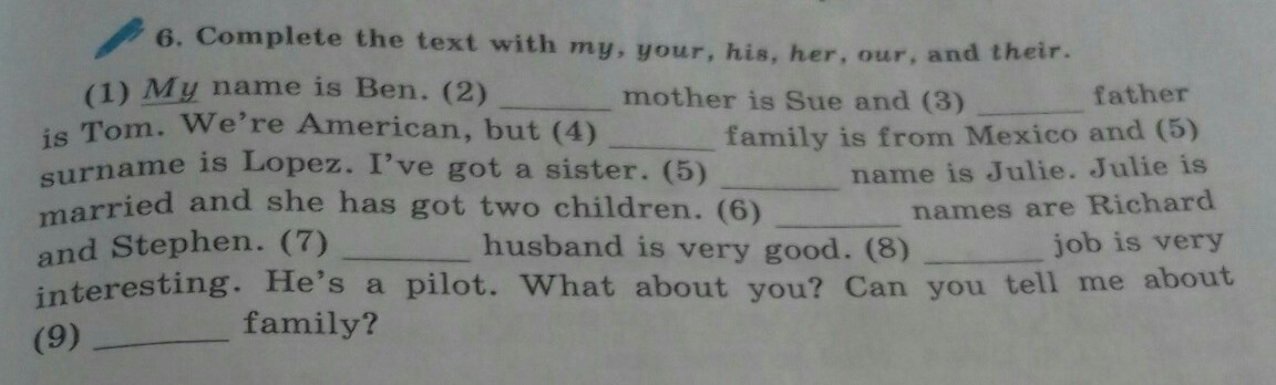 2 my 3 my 4 our 5 her 6 their 7 her 8 his 9 your