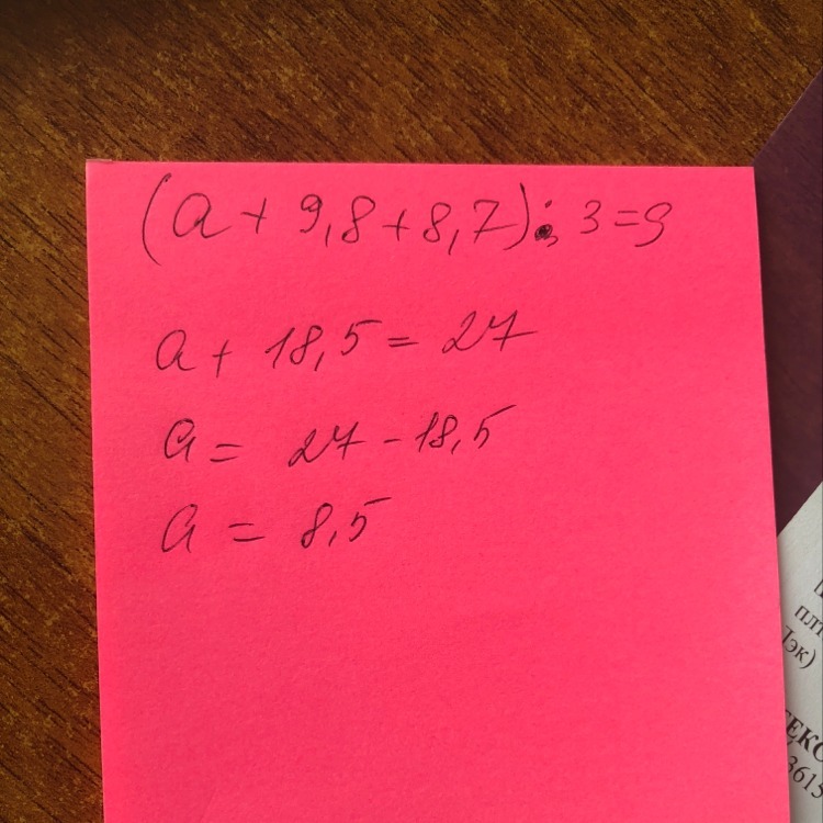 Первое число равно a, второе число - 9,8, третье число - 8,7. Среднее арифметическое этих чисел равно 9. Найди число а