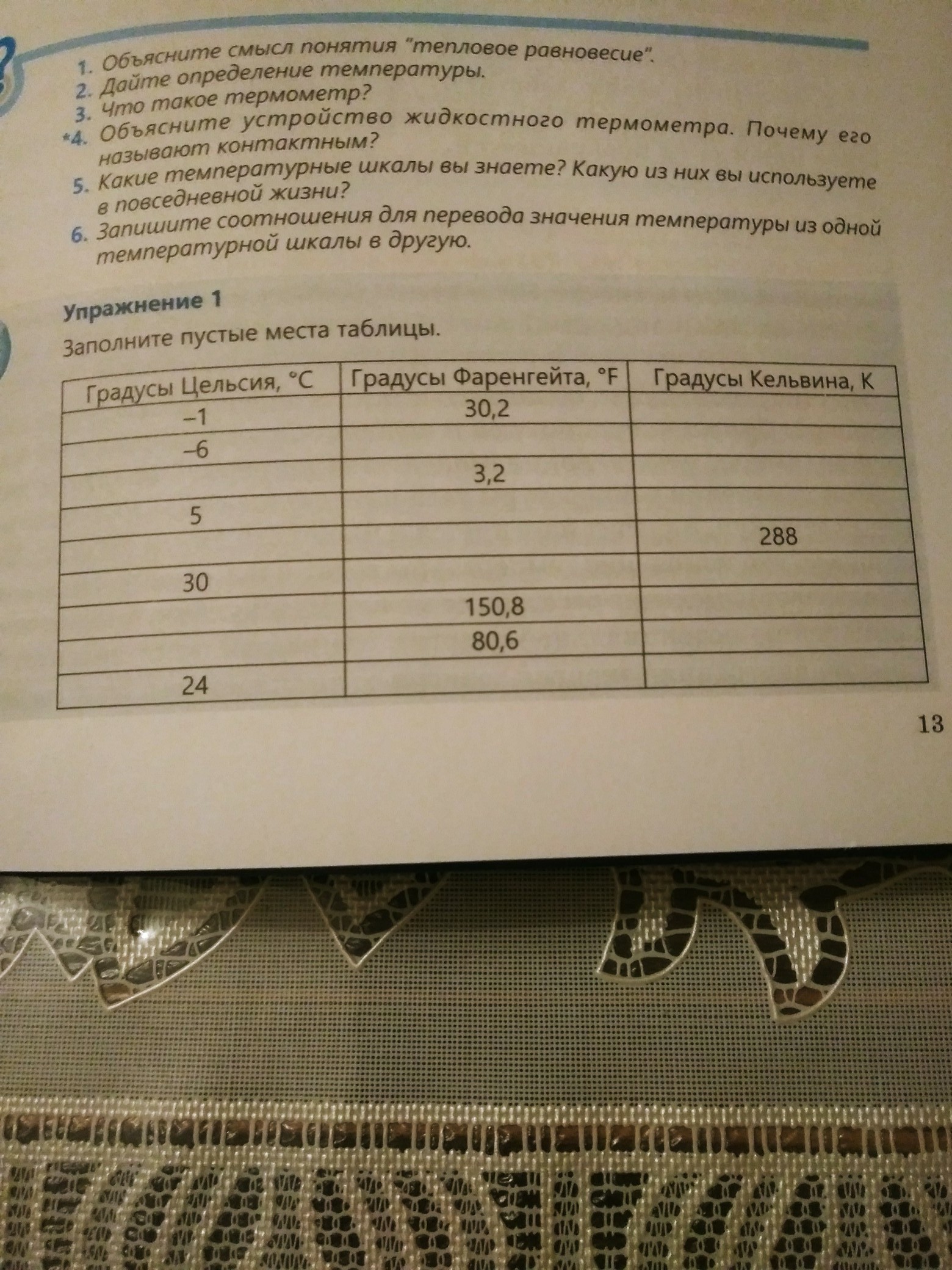 °C; °F; K