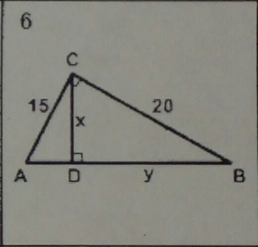 треугольник АСВ и треугольник НСВ (я в квадратик поставила Н) подобны (все три угла равны), из этого следует, что АВ/СВ=СА/СН=СВ/НВ=25/20=15/х20/у=1,25