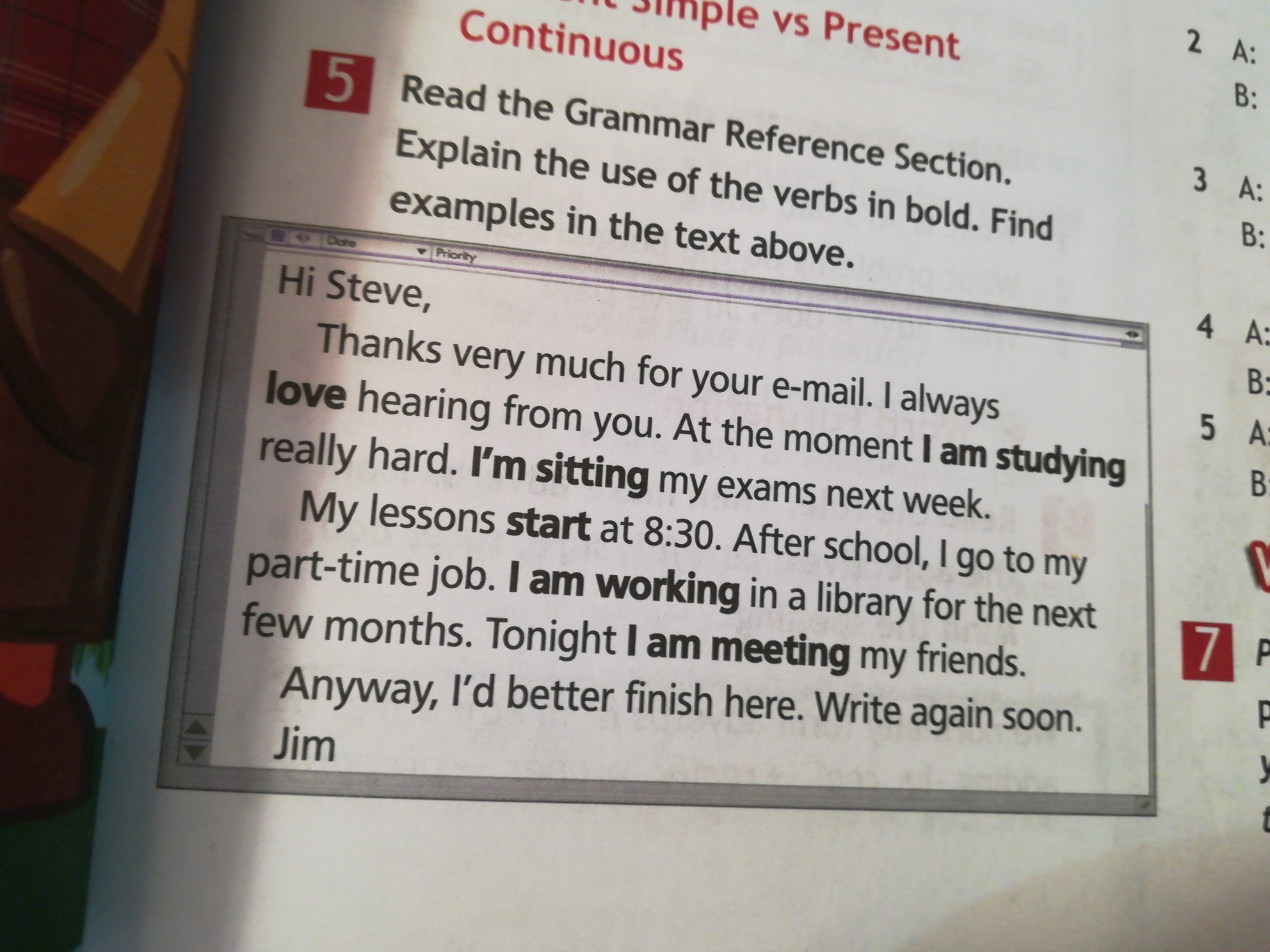 Мои уроки начинаются в 8:30. После школы, я иду на дополнительную работу. Я работаю в библиотеке в ближайшие несколько месяцев. Вечером я встречаю своих друзей.