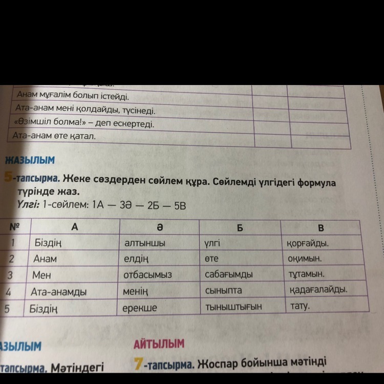 5 - сөйлем : 5А-2Ә-5Б-1В.