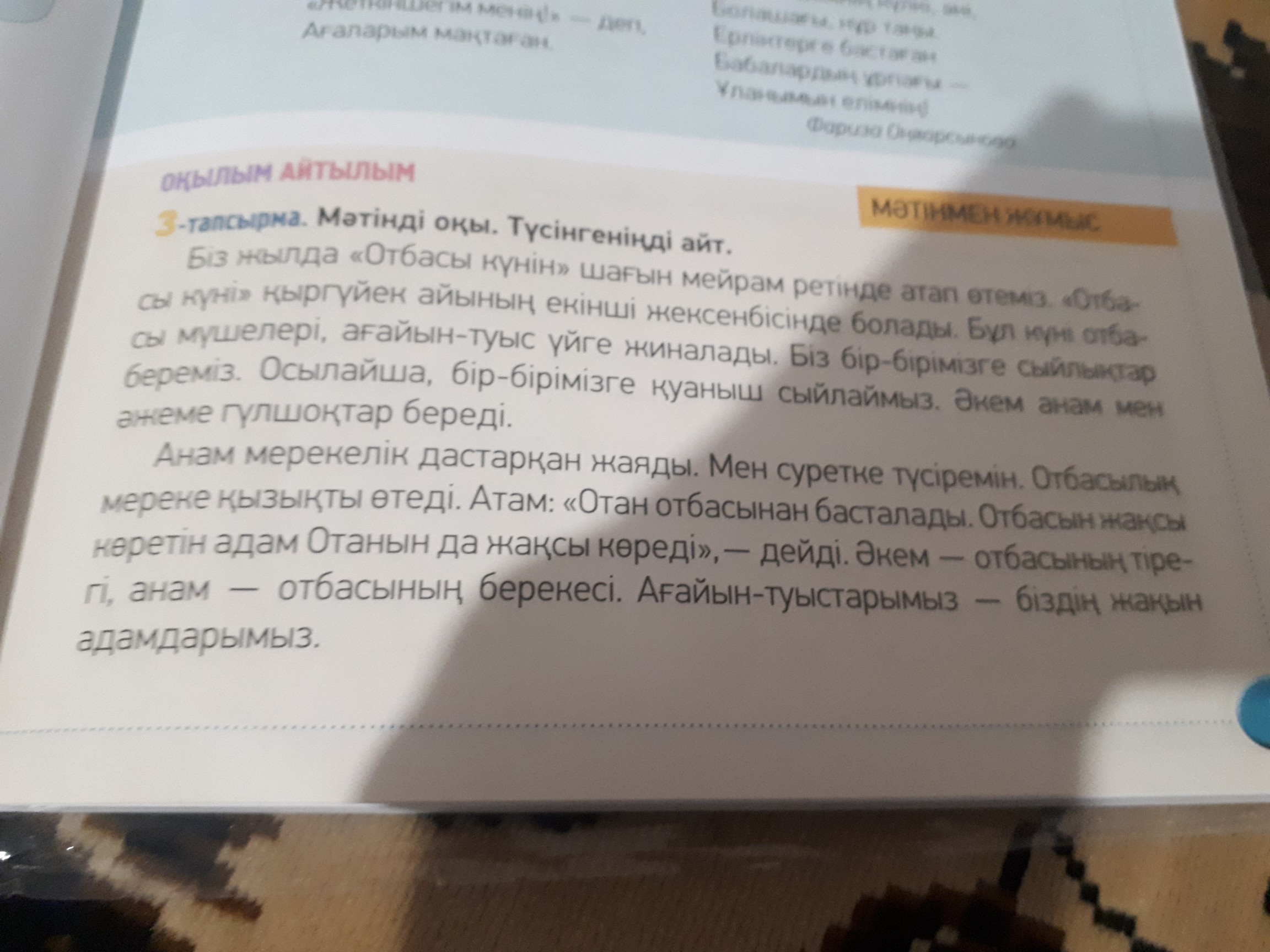 В этом году “день семьи” мы будем проводить в виде маленького праздника.“День семьи”отмечается второе воскресенья сентября.В этот собираются все родственники.Мы дарим друг другу подарки.Таким образом,мы дарим друг другу радость.Папа дарит маме и бабушке цветы. Мама накрывает праздничный стол.Я фотографирую.Семейный праздник проходит интересно.“Родига начинается с семьи.”“Человек который любит семью тот и любит Родину”-говорит дедушка.Папа опора семьи.Мама благополучие дома.Родственники наши близкие люди