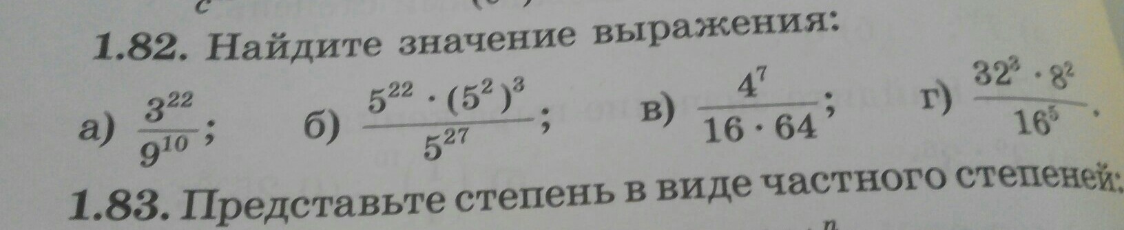 б) 5^22*(5^2)^3/5^27=5^22*5^6/5^27=5^28/5^27=5