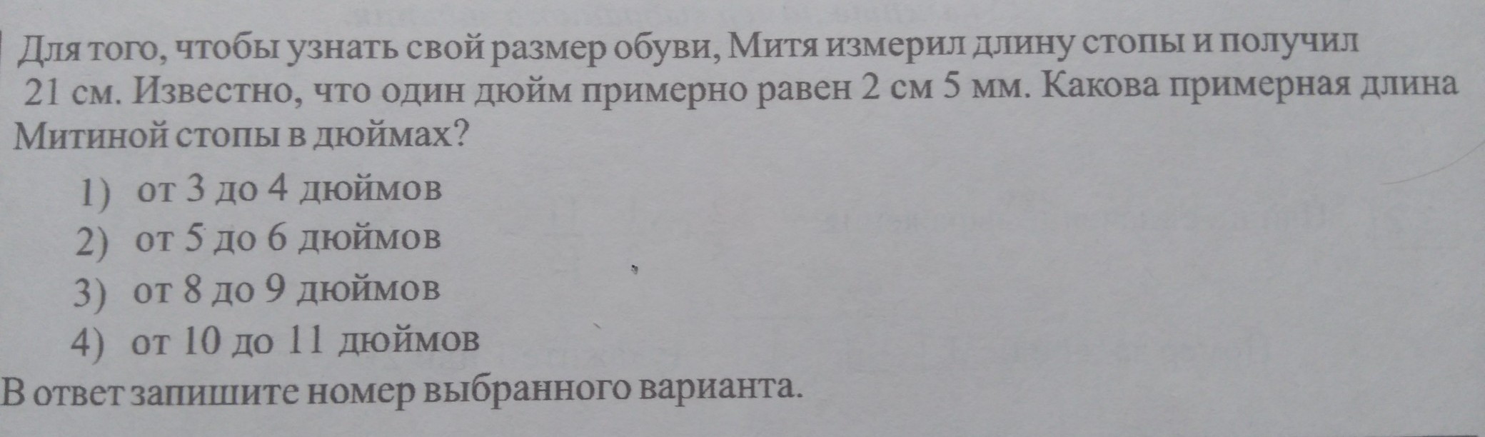210:25=8,4 примерная длина Митиной стопы в дюймах