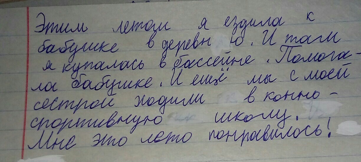 this summer I went to my grandmother's village. and there I swam in the pool. help grandma.and my sister and I went to a sports school. I liked this summer very much