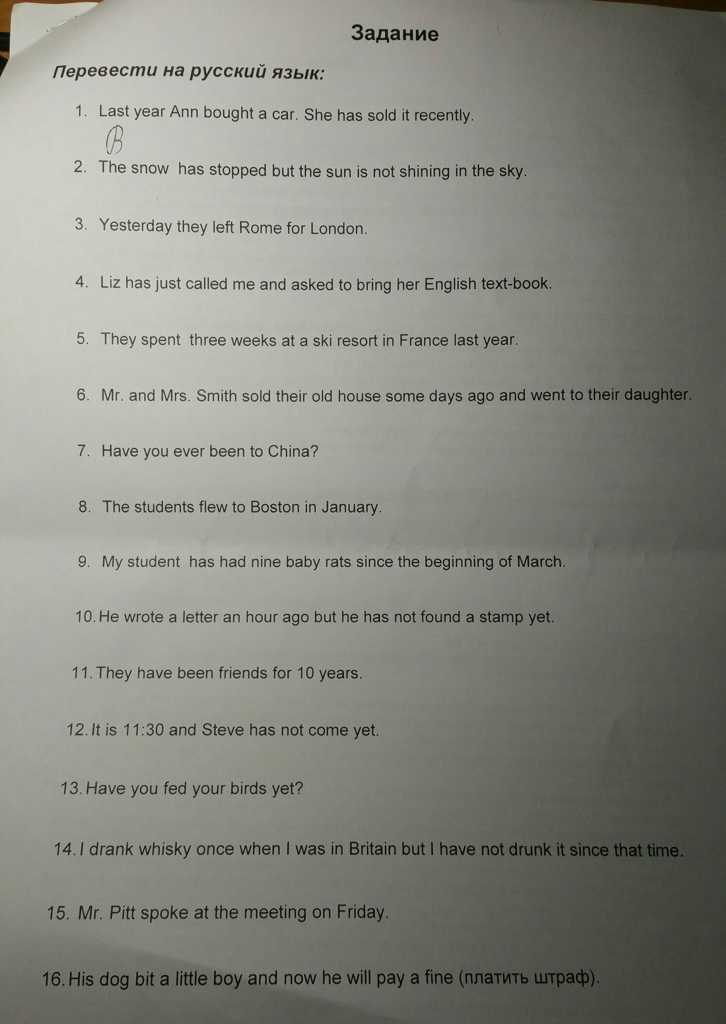 1. В прошлом году Аня купила машину. Она недавно продала ее.