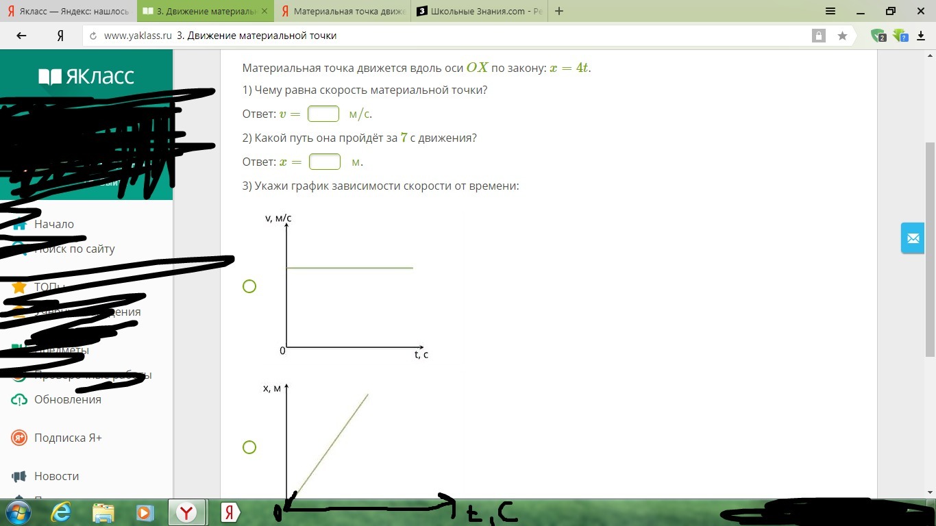 Материальная точка движется вдоль оси OX по закону: x=4t.