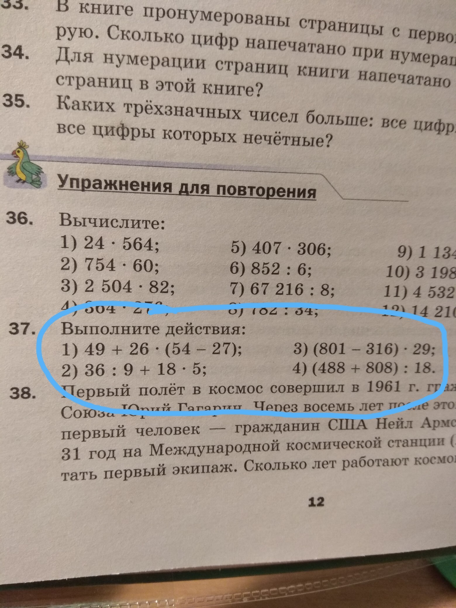 49+26*(54-37) 1)54-27=27. 2)26*27=702. 3)702+49=751