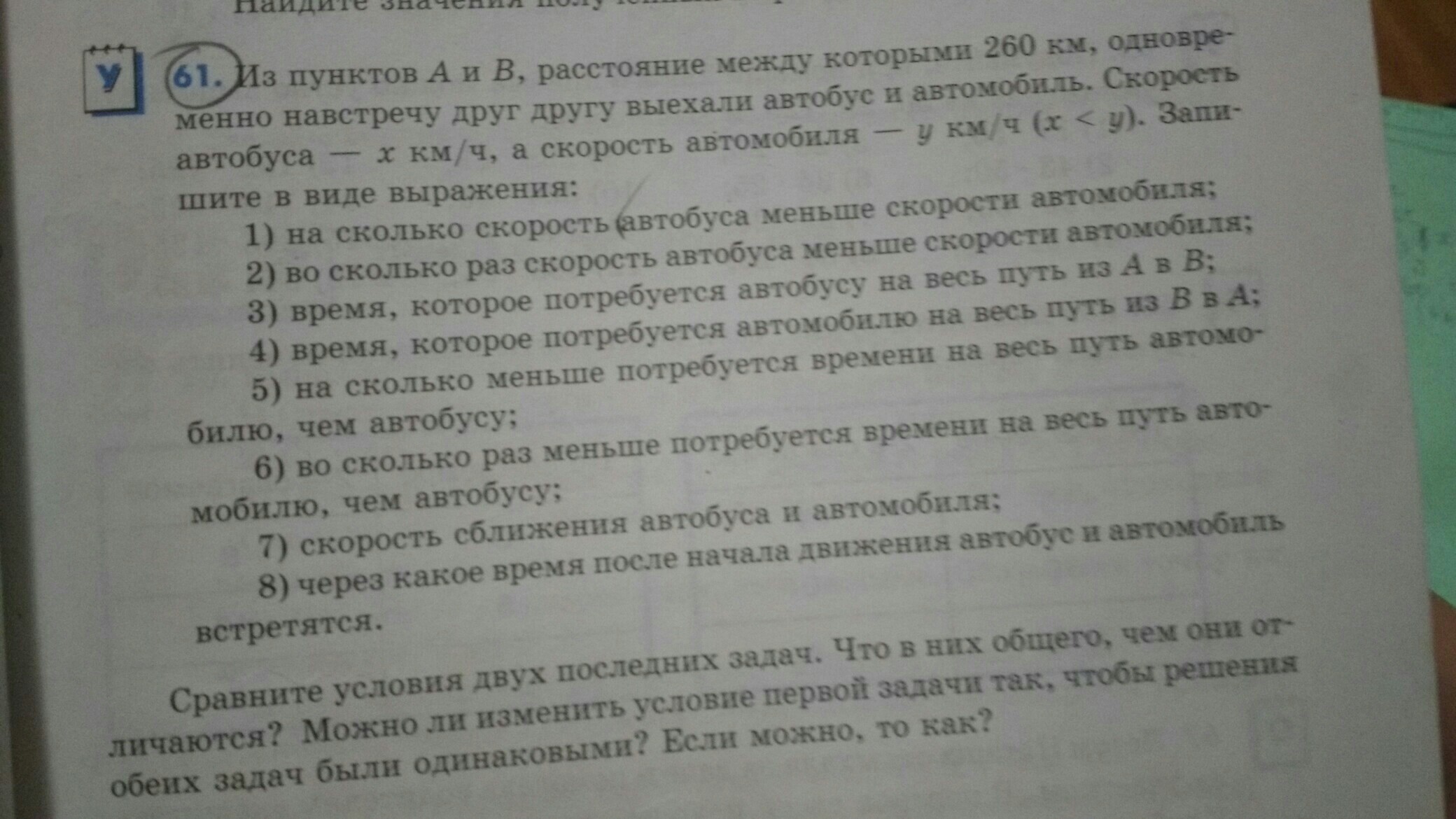 1) y-x 2) y/x 3) 260/x 4) 260/y 5) 260/x - 260/y 6) 260/x : 260/y = y/x 7) x+y 8) 260/x+y