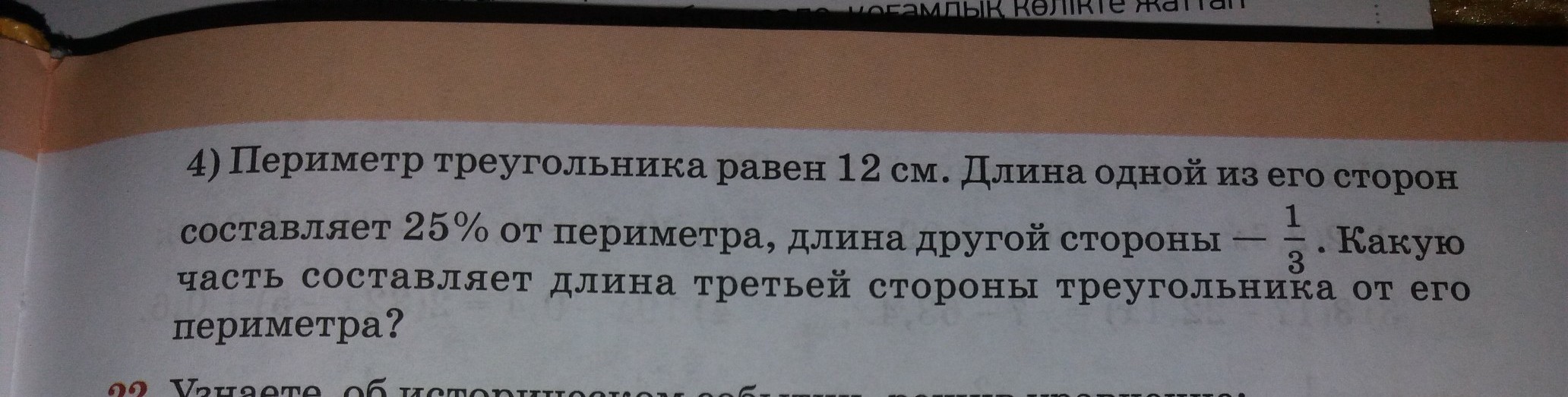 Длина одной стороны треугольника : 12*0.4=3 (см)