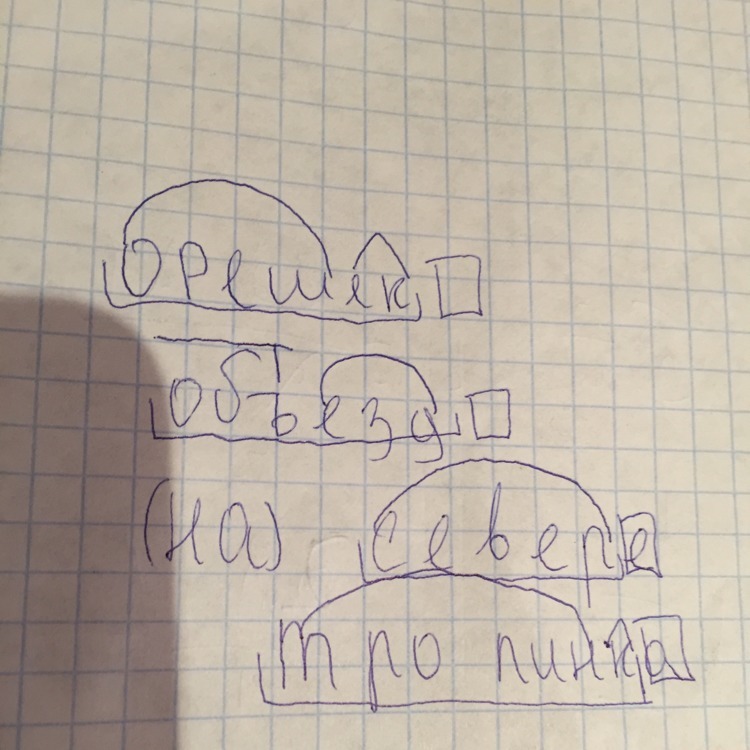 Объезд -об приставка,езд корень На севере- на предлог, север корень е суффикс Тропинка- троп корень инк суффикс и а окончание