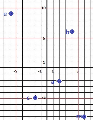 Постройте точку на плоскости по заданным координатам. Точка а (5;-2) , точка b (4;6) , точка с (-2;-5) , точка точка е (-6;9) , точка m (6;-8) .