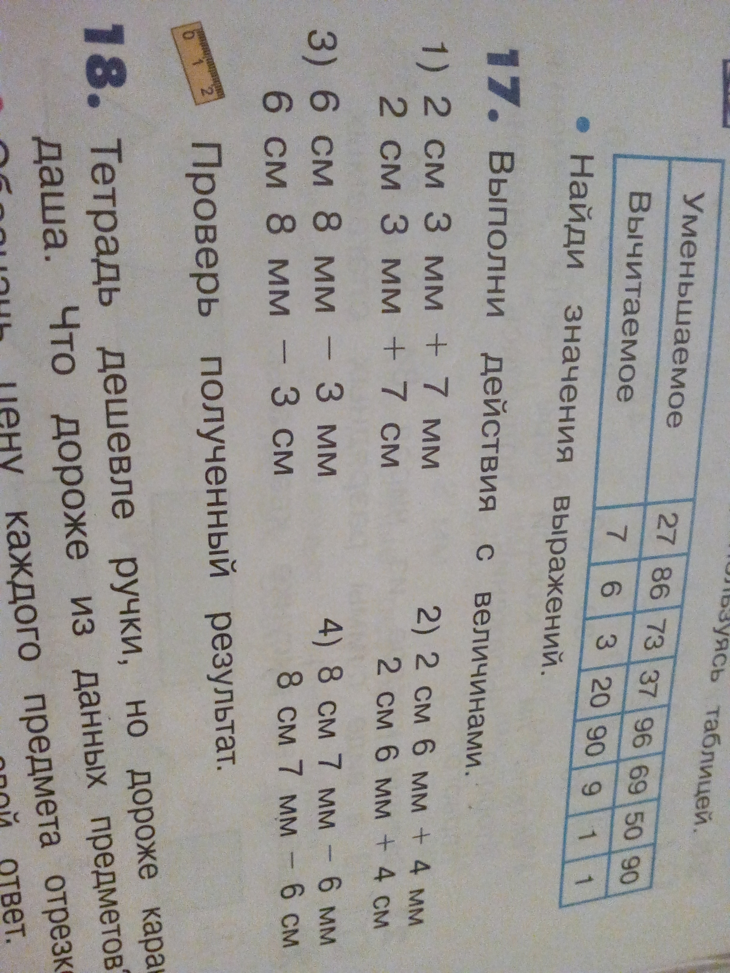 2 см 3мм +7мм=3см 2 см 3 мм +7см=9.3см 6 см 8мм -3мм=6.5см 6 см 8мм -3см=3.8см 2см 6мм +4мм=3 см 2см 6мм +4см=6.6 см 8см 7мм - 6мм=8.1 см 8см 7мм - 6см=2.7 см