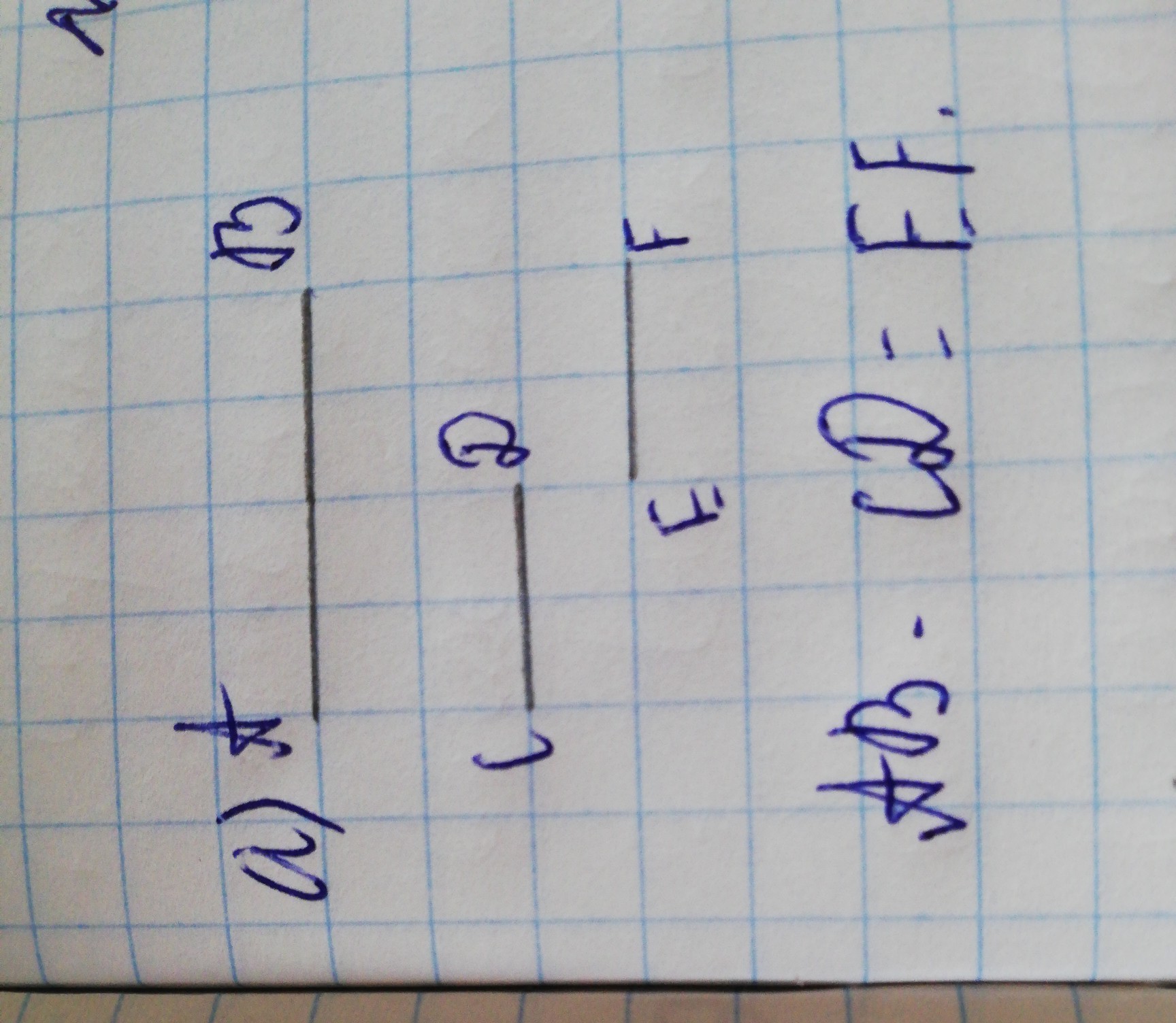 на клетчатой бумаге изобразите отрезки, как показано на рисунке 2.12. Изобразите какой-нибудь отрезок, равный разности отрезков АВ и СD.