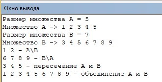 a.Union(b).Print; Println(' - объединение A и B');
