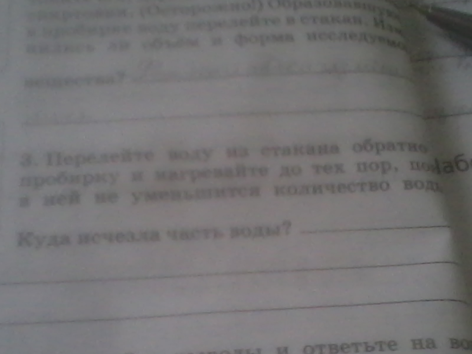 Перелейте воду из стакана обратно в пробирку и нагревайте до тех пор,пока в ней не уменьшится количество воды.Куда исчезла часть воды?