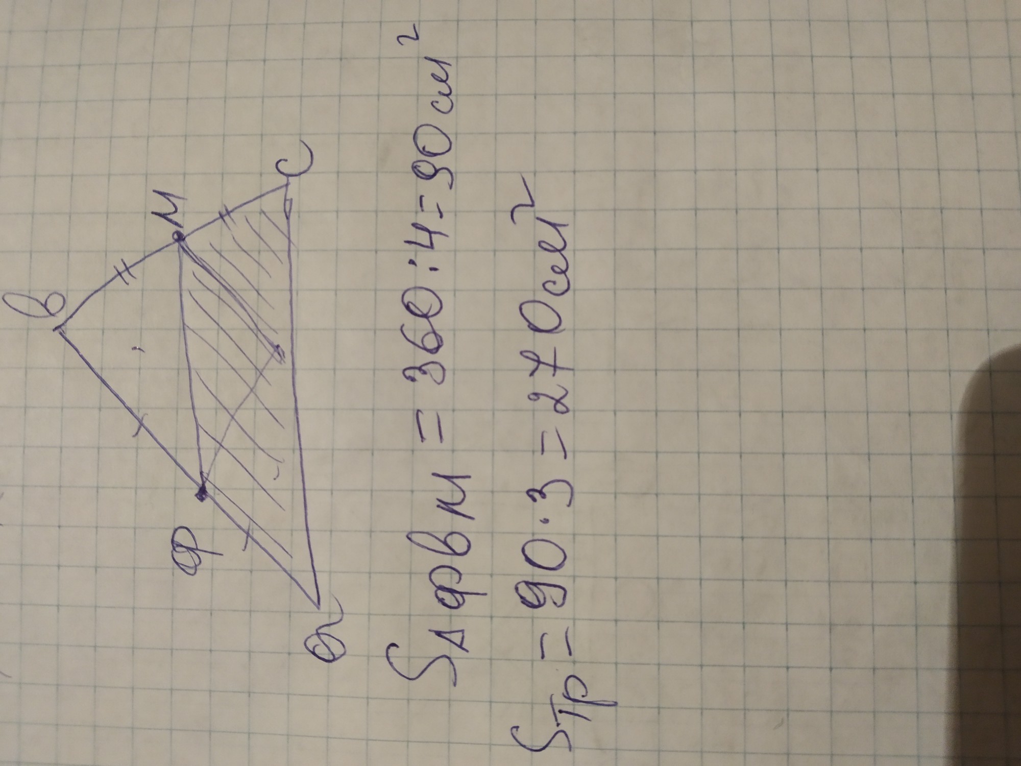 Площадь треугольника абс равна 360. фм средняя линия параллельная стороне аб найдите площадь трапеции афмб