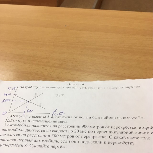 1) V1=(300-400)/40=-2,5 м/с V2=(300-0)/40=7,5 м/с x1=400-2,5*t x2=7,5*t