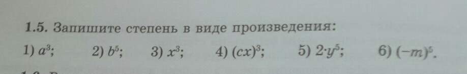 1)а*а*а 2) b*b*b*b*b 3) x*x*x 4) c*x*c*x*c*x 5) 2*y*y*y*y*y 6) -m*(-m)*(-m)*(-m)*(-m)