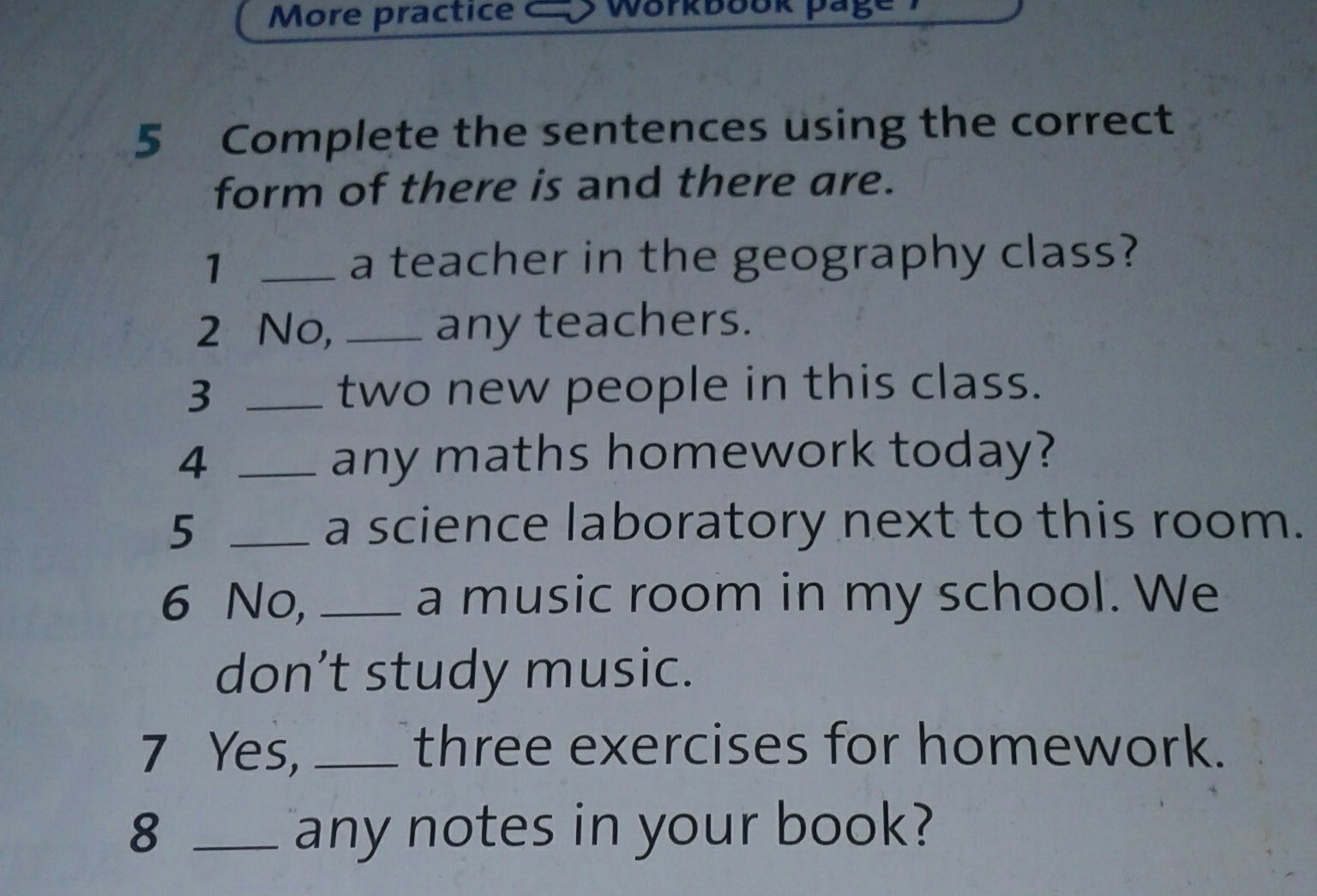 1 is there 2 no, there aren't 3 there are 4 is there 5 there is 6 no, there isn't 7 yes, there are 8 are there