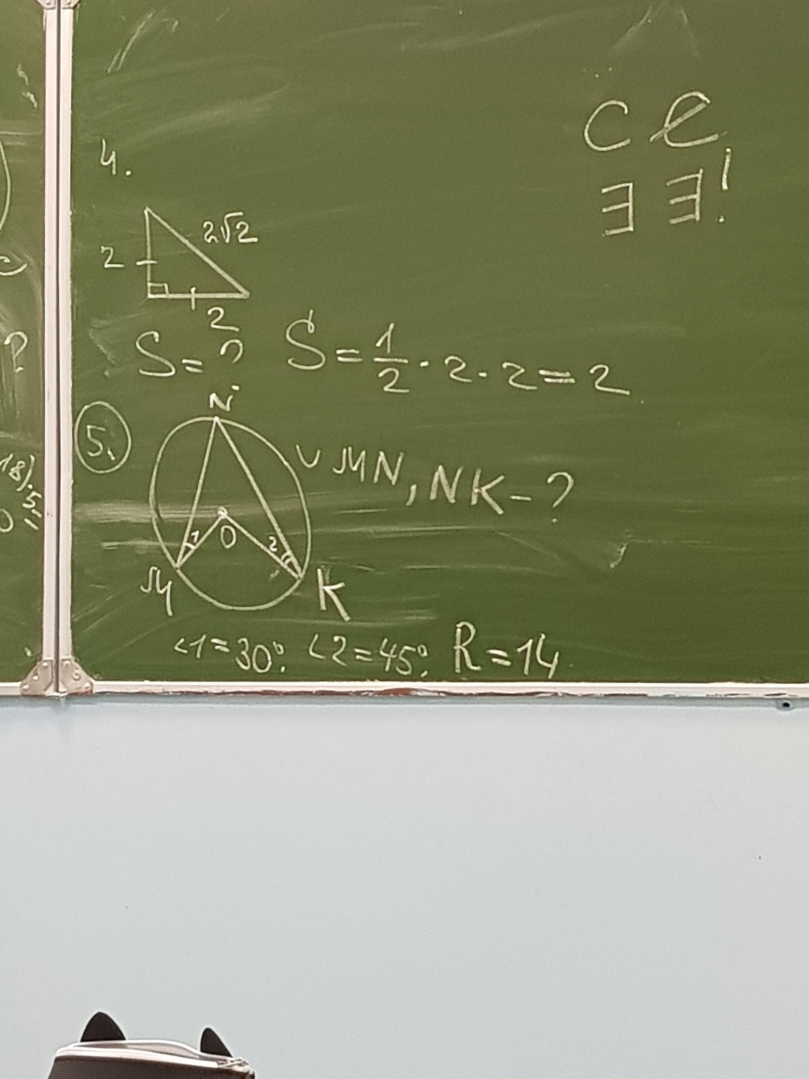 Решение: если провести линию от о до н то появится ещё один угол в 45 градусов и по методу 45, 45 и 90 находим: 45 - x, 45-x, 90 - x корень из двух, в нашем случае х это радиус. Желаю успехов!