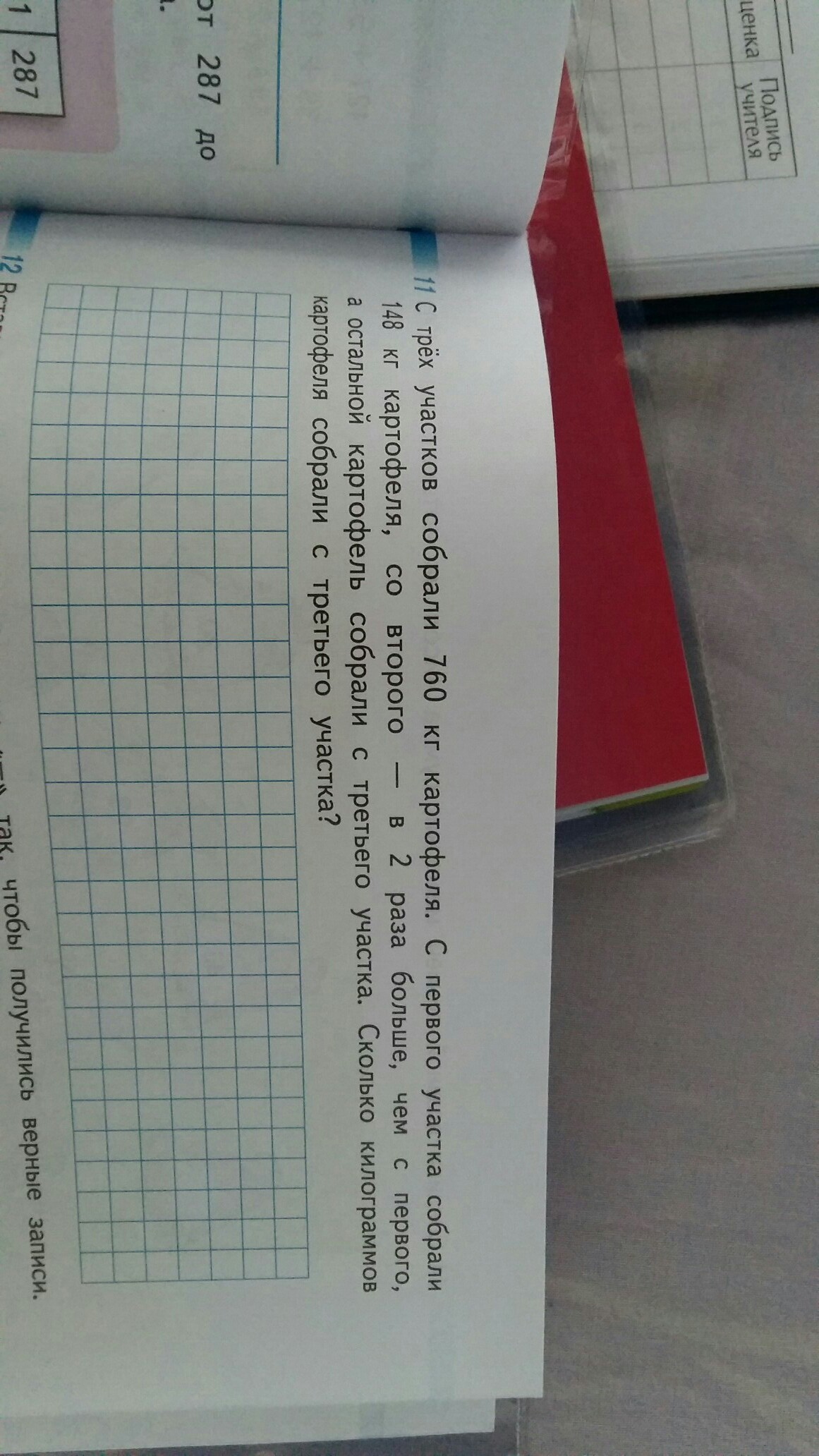 С 1 у частка собрали 148 1)148×2=296 2)760-296-148=316