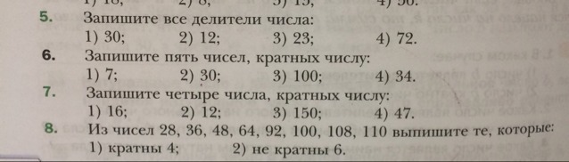 5). 30= 1, 2, 3, 5, 6, 10, 15, 30