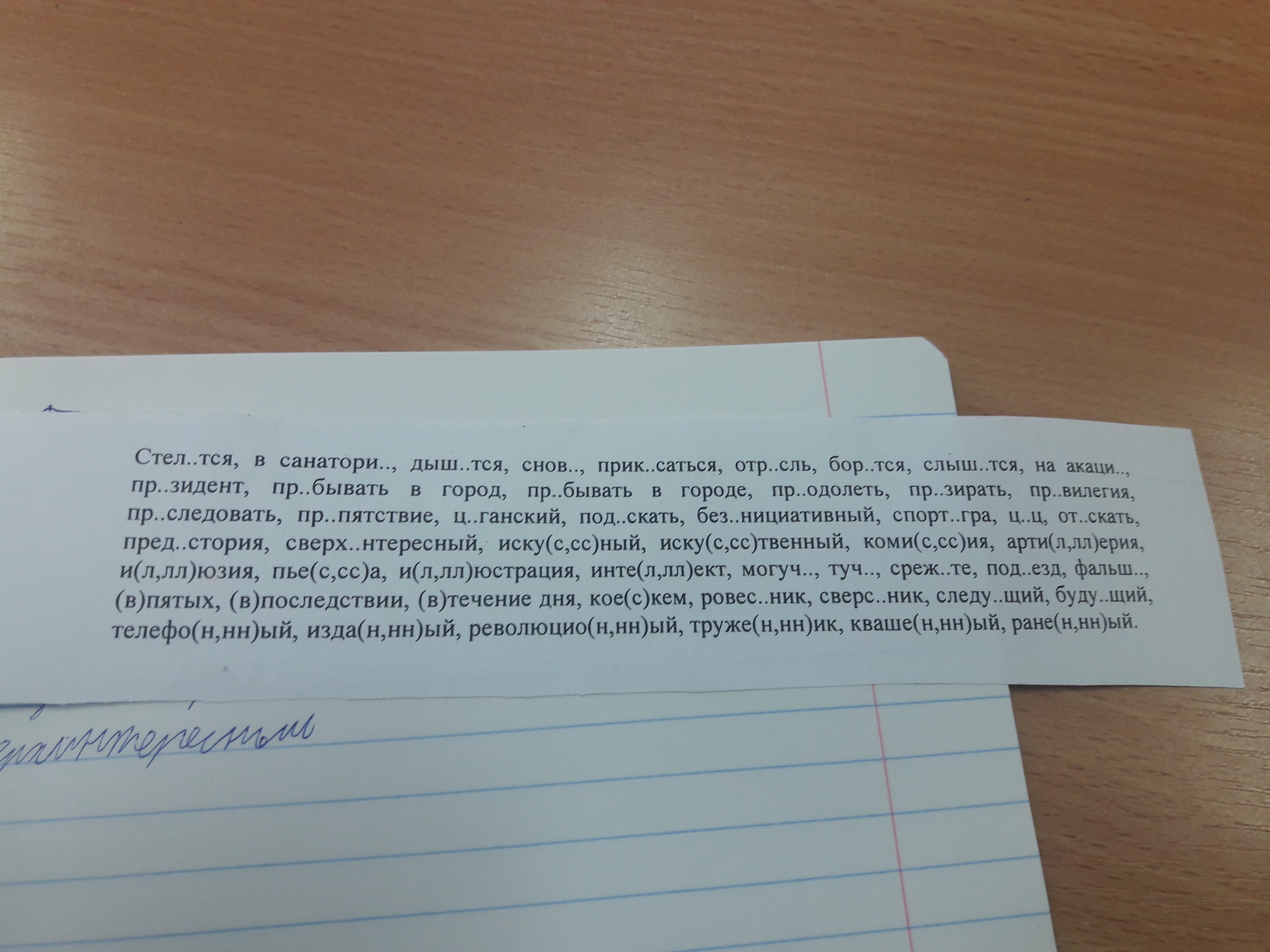 Стелется, в санатории, дышится, прикасаться, отрасль, борются, слышатся, на акации, президент, пребывать в город, прибывать в городе, преодолеть, презирать, привилегия, преследовать, препятствие, цыганский, (???), безынициативный, спортигра, цыц, (???), предыстория, сверхинтересный, искусный, пьеса, иллюстрация, интеллект, могуч, туч, срежьте, подъезд, фальшь, в пятых, в последствии, в течение дня, кое с кем, ровесник, сверстник, следующий, будущий, телефонный, изданный, революционный, труженик, квашеный, раненый.