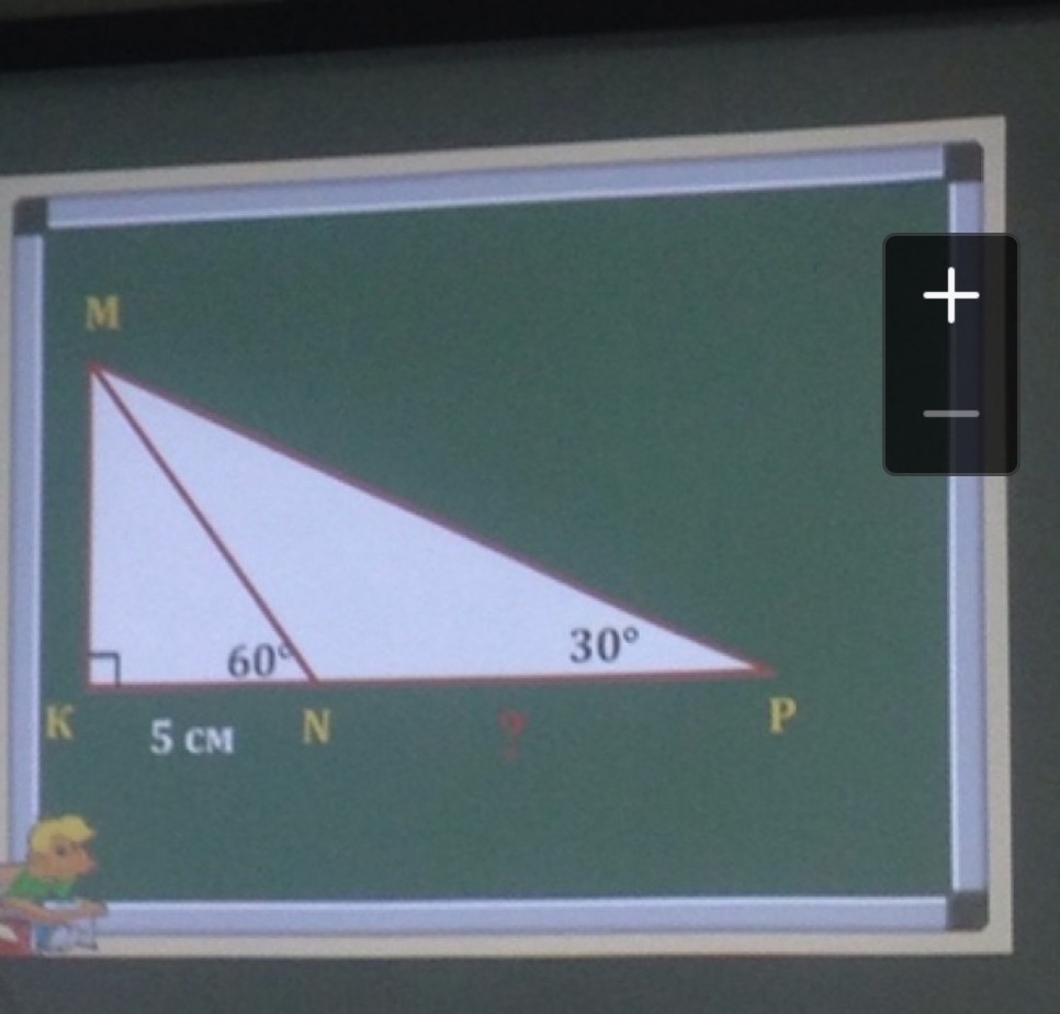 Из прямоугольного треугольника MKN: MK = KN * tg60° = 5√3. Сумма углов треугольника равна 180°, значит . Против угла 30° гипотенуза в два раза больше катета, т.е.