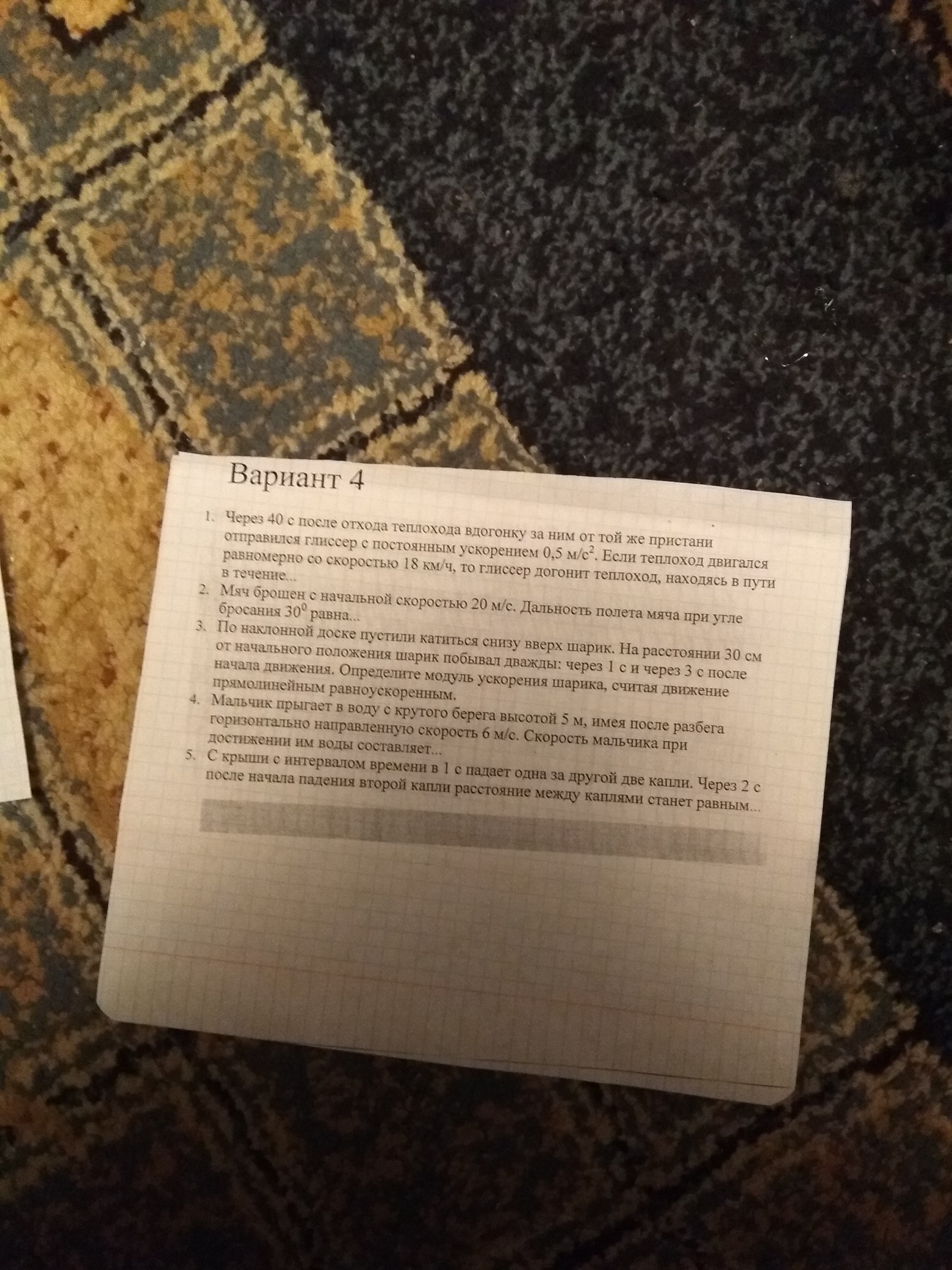 1. Пусть S - расстояние, на котором встретятся теплоход и глиссер. Тогда составим уравнения для обоих корабликов: