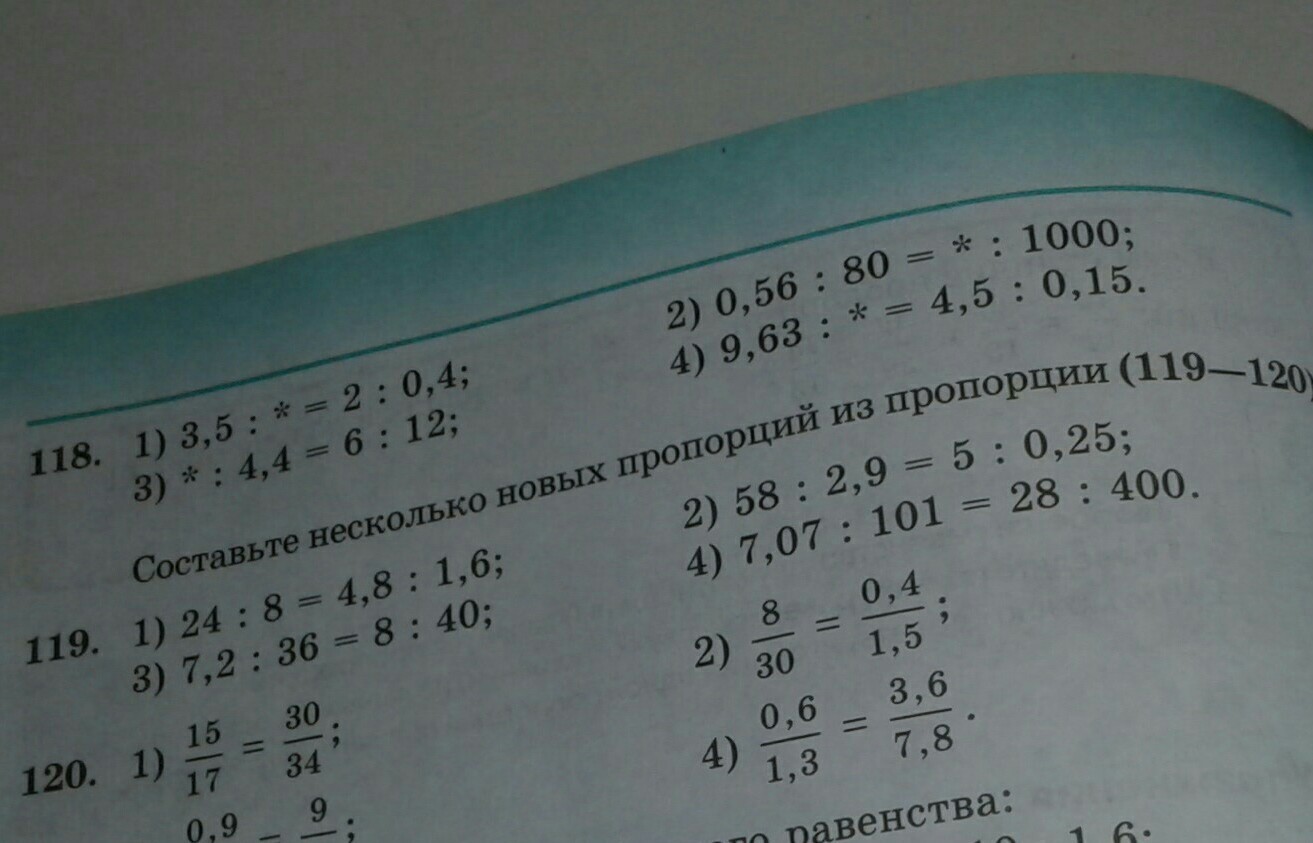 Вместо звездочки вписать недостающие члены пропорции