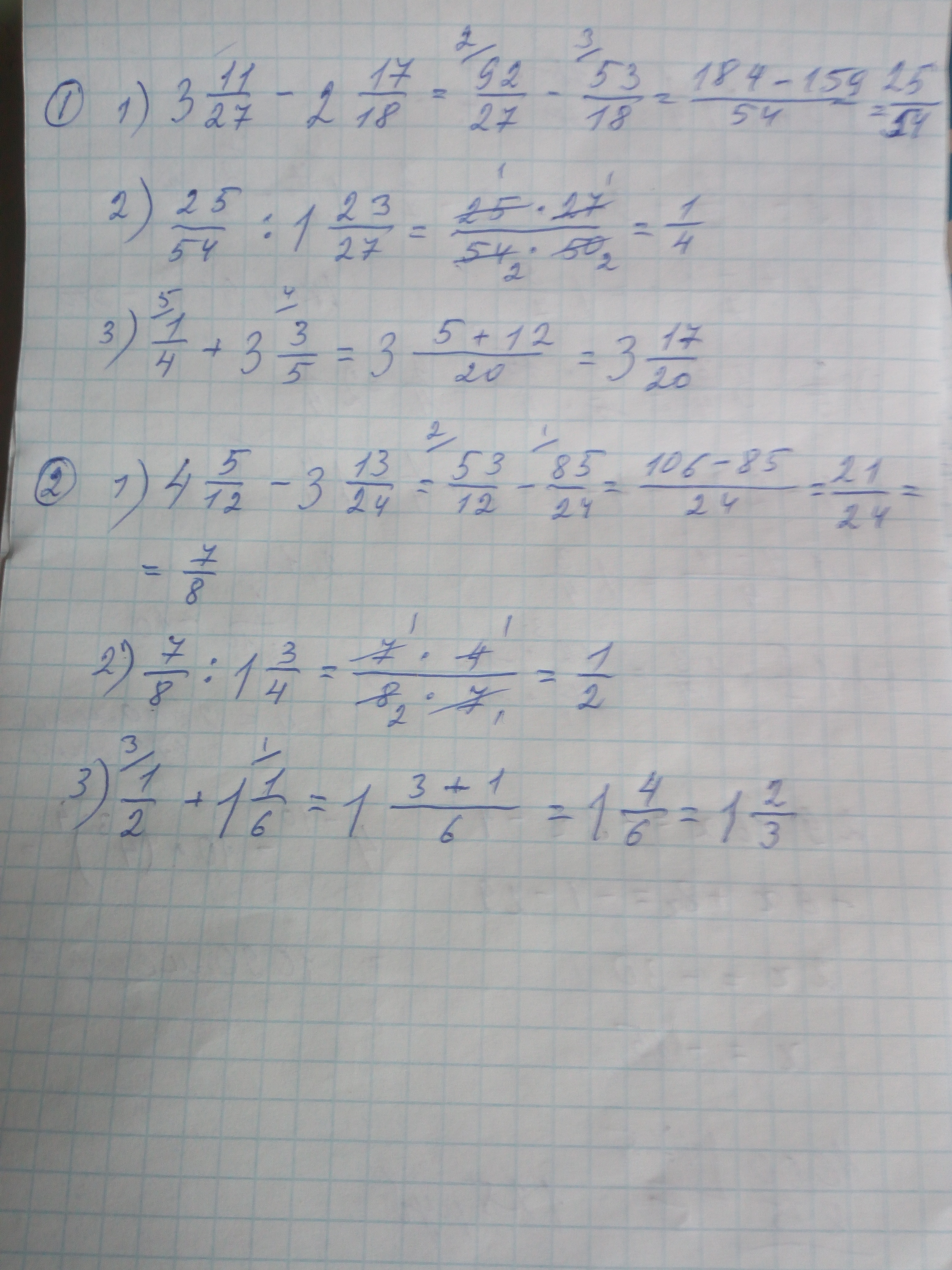 1. (3 11/27-2 17/18):1 23/27+3 3/5=