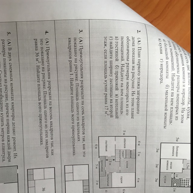 Если площадь маленького квадрата 1, то и длина его стороны 1. Значит длина стороны большого квадрата 3. Стороны других двух квадратов относятся как 2:1. Соответственно сторона меньшего из них равна 4/3. Итак, ширина прямоугольника 4, а длина 17/3. Соответственно его площадь 68/3.