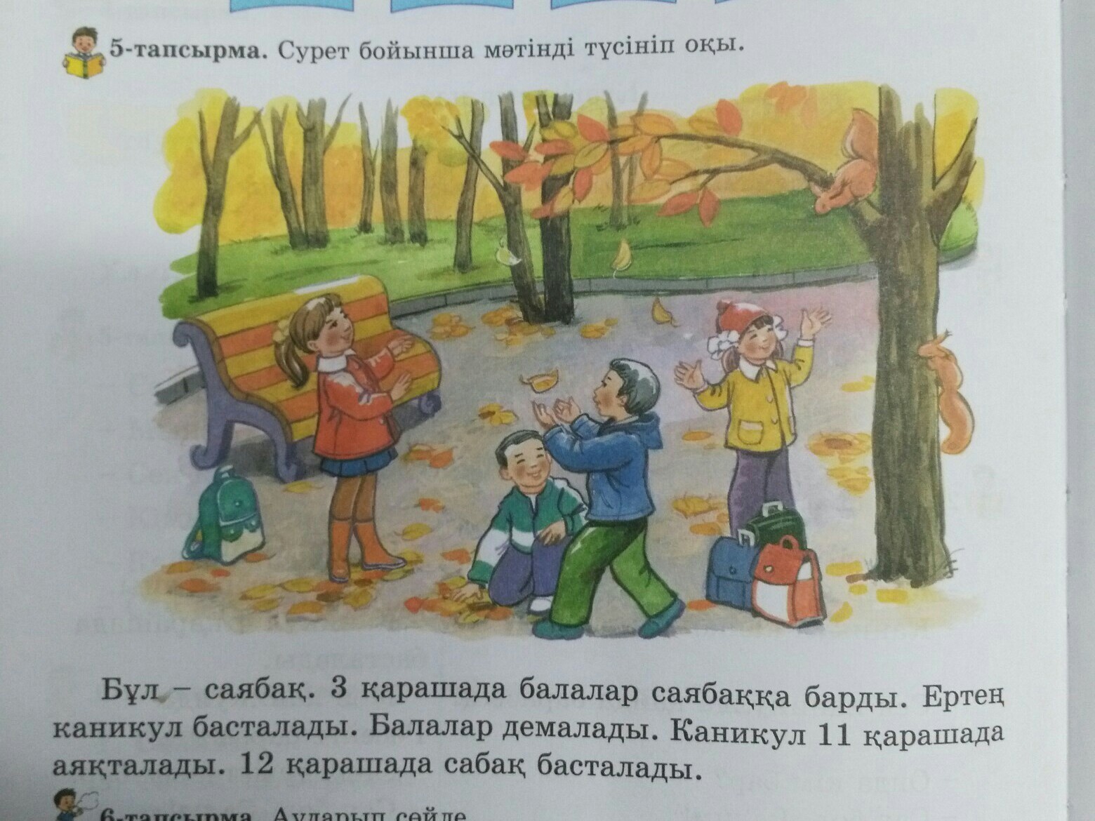 Это-парк.Третьего ноября дети пошли в парк.Завтра начинаются каникулы.Дети отдыхают.Каникул заканчивается 11 ноября.12 ноября начинаются уроки.