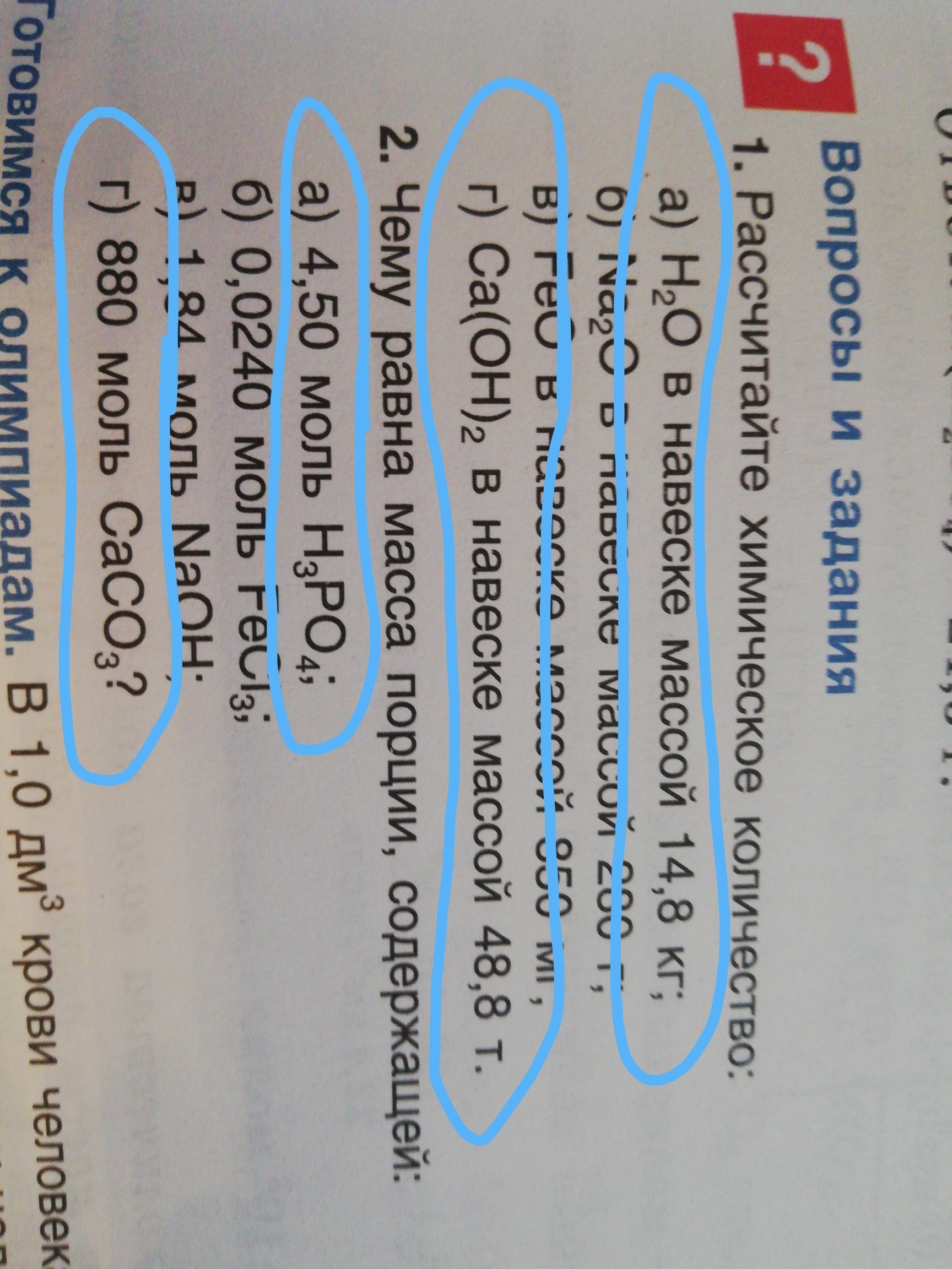 а) Рассчитайте химическое количество H2O в навеске массой 14,8 кг.
