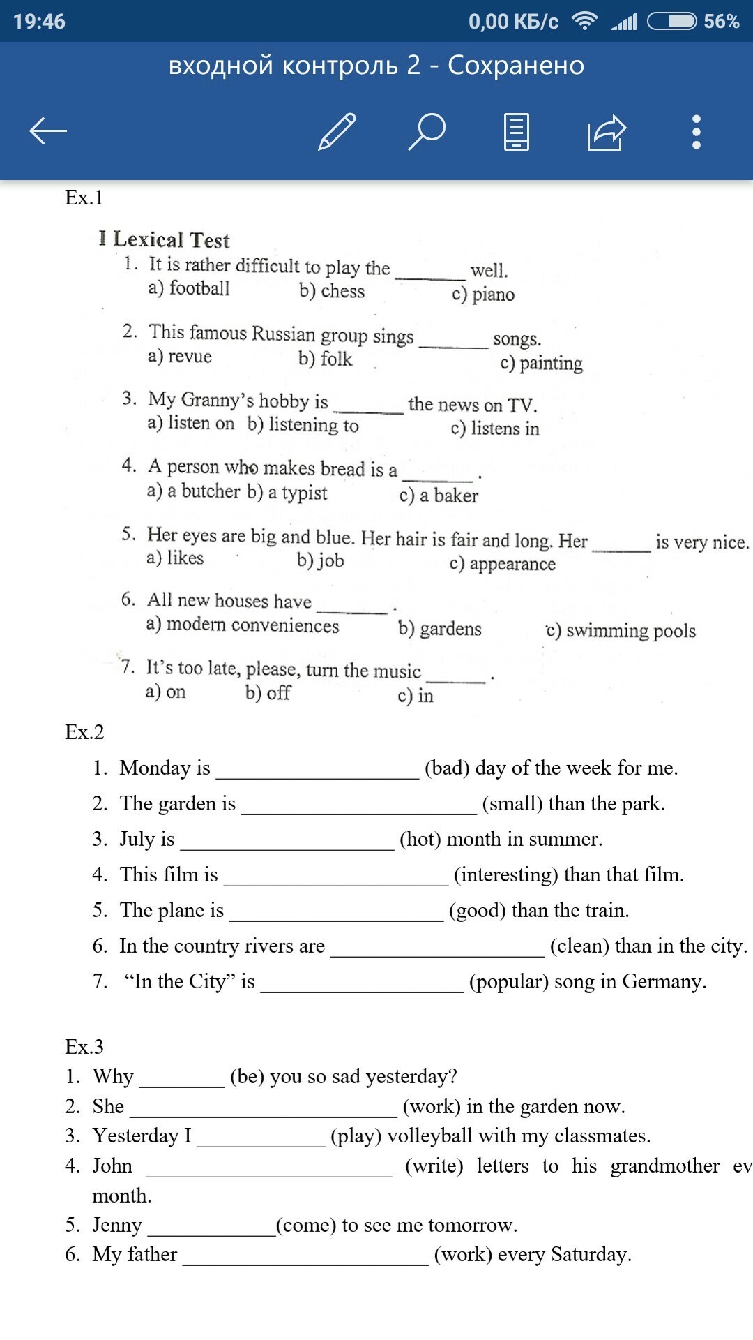 1 - were, 2 - works, 3 - played, 4 - writes, 5- will come, 6 - works.