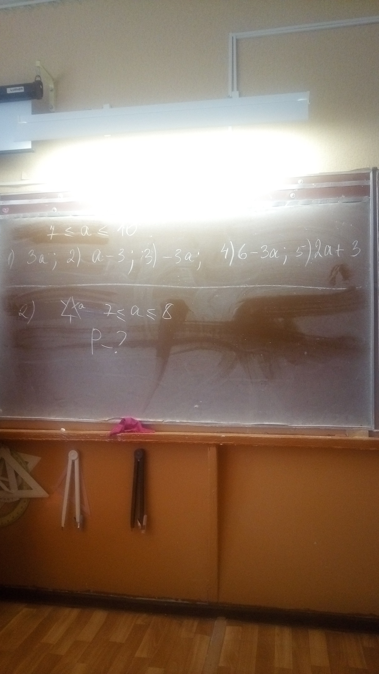 3) 7 ≤ a ≤ 10|·(-3); -30 ≤ -3a ≤ -21. 4) -30 ≤ -3a ≤ -21|+6; -24 ≤ 6 -3a ≤ -15.