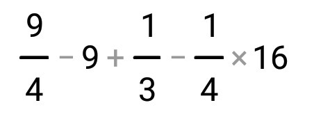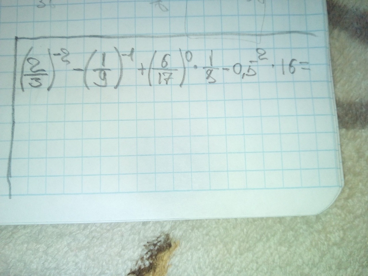 Первую и вторую дробь надо перевернуть, число в первой степени всегда равно 1, преобразуем из десятичной дроби (0,5) в обыкновенную (12), получилось (32)^2-9+1*13-(12)^2*16