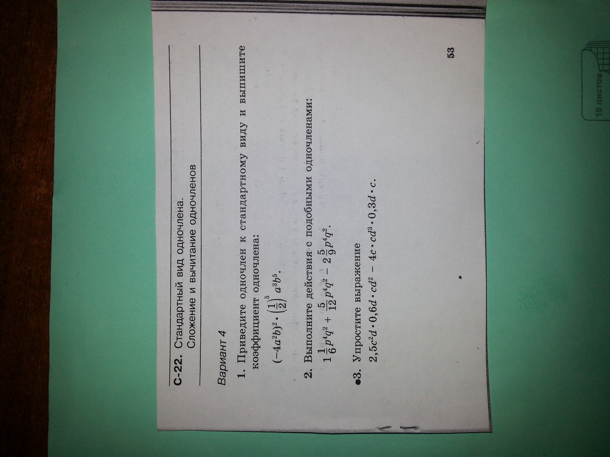 алгебра 7 класс. самостоятельная работа номер 22. стандартный вид одночлена. мложение и вычитание одночленов