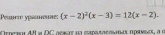 перенести все влево и вынести общий множитель: (х-2) * ((х-2)(х-3)-12) = 0 первый корень х=2 х^2-5х-6 = 0 по т.Виета корни (-1) и (6) это еще два корня...