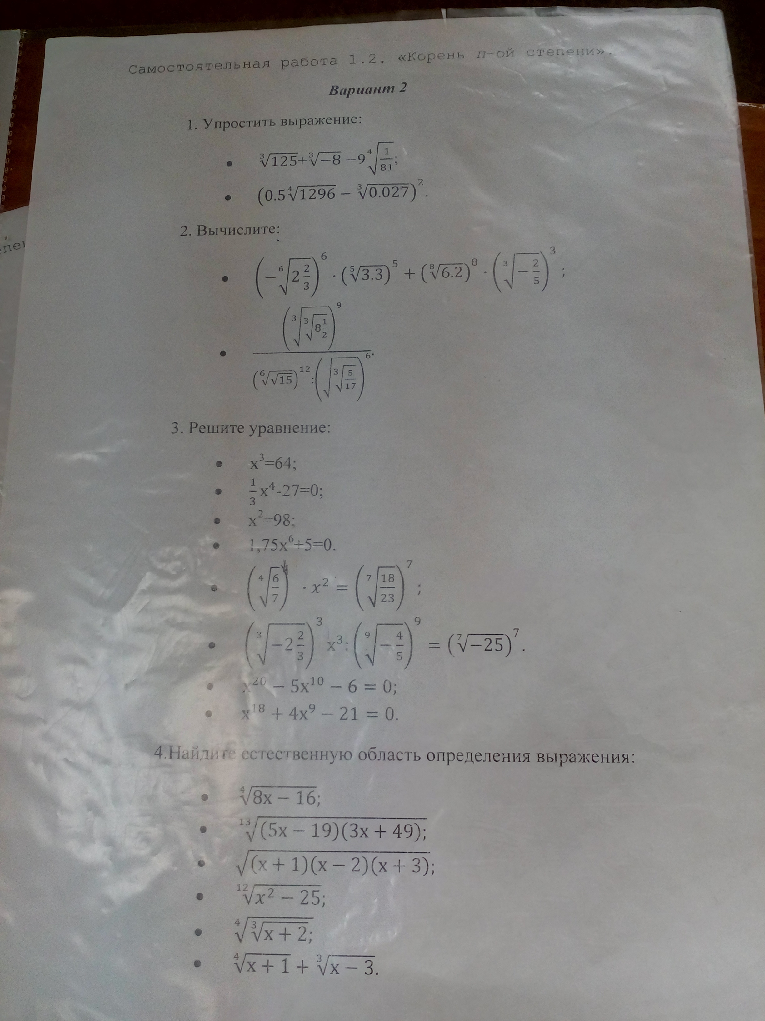 задание 1.2 четвернои корень из 1296 равен 6 троинои корень из 0,027 равен 0,3 итого получается (0