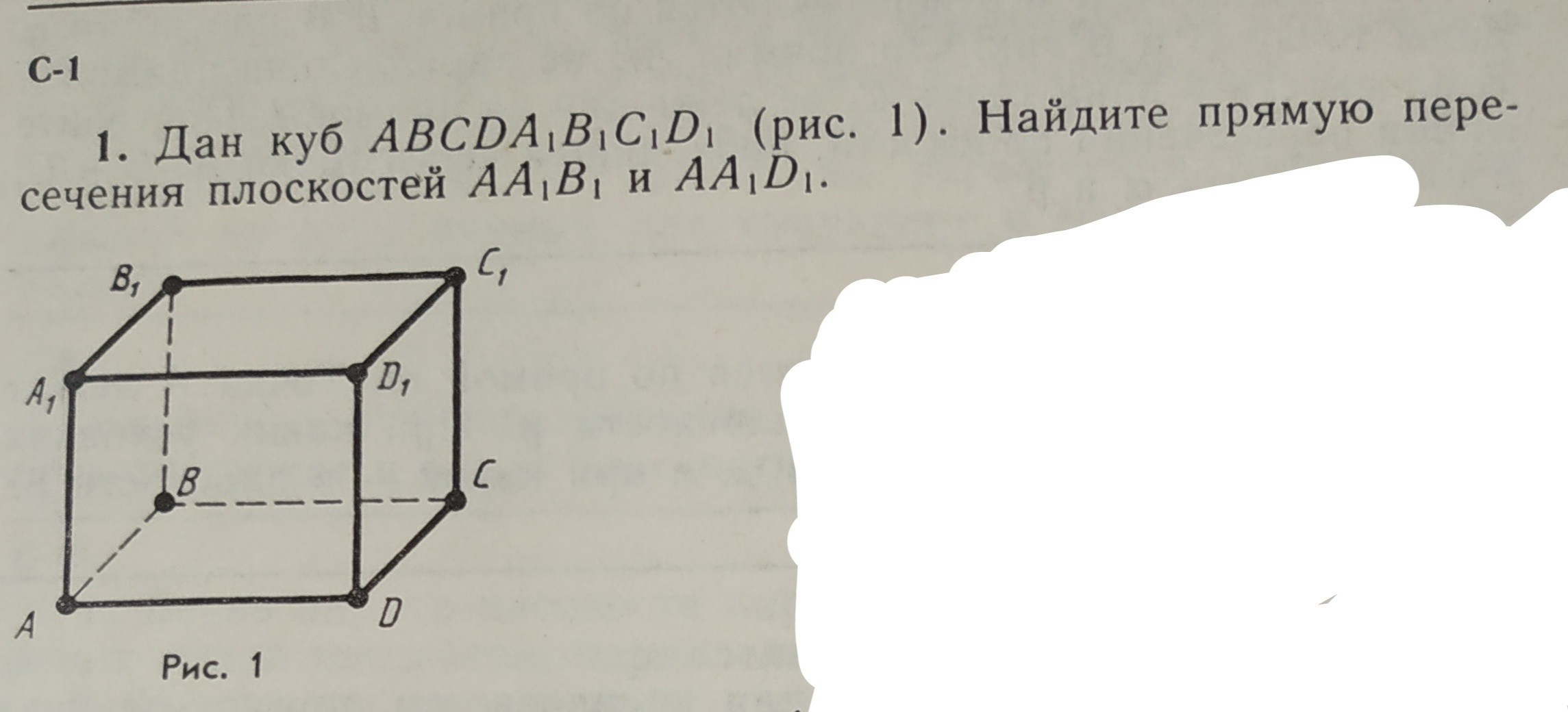 Дан куб ABCDA1B1C1D1 (рис.1) . Найдите прямую пересечения плоскостей AA1B и AA1D1. ПОМОГИТЕ СРОЧНО!!!!