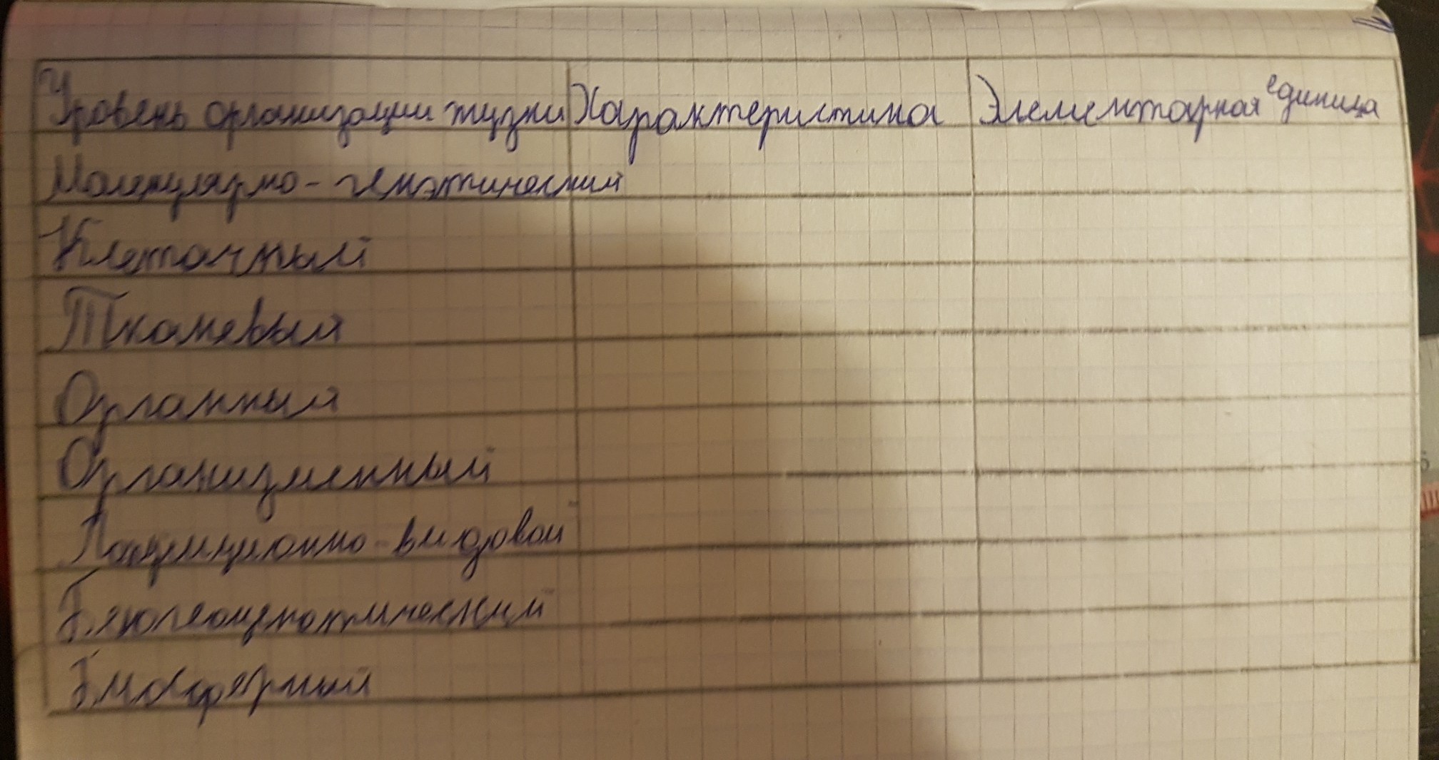 Молекулярный-элементарная единица-молекула,наука изучающая-молекулярная биология