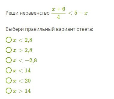 frac{(x + 6)4}{4}  < (5 - x)4 \ x  + 6  <  20 - 4x \ x + 4x > 20 - 6 \ 5x > 14  \ x >  frac{14}{5}  \ x > 2.8